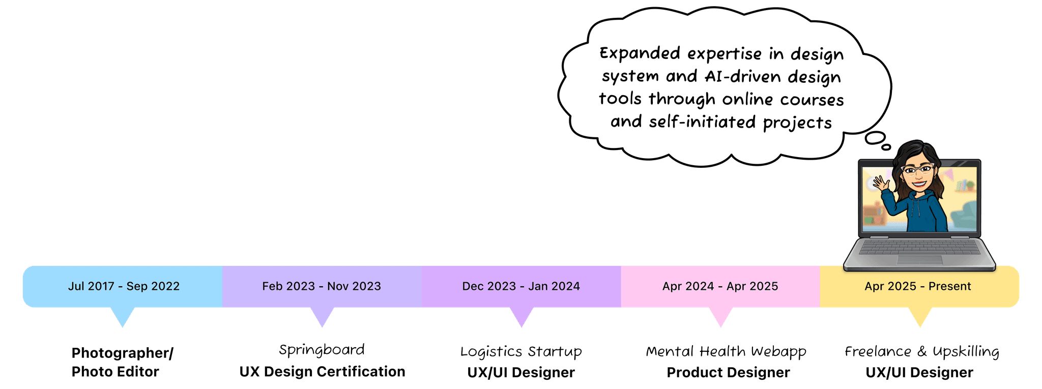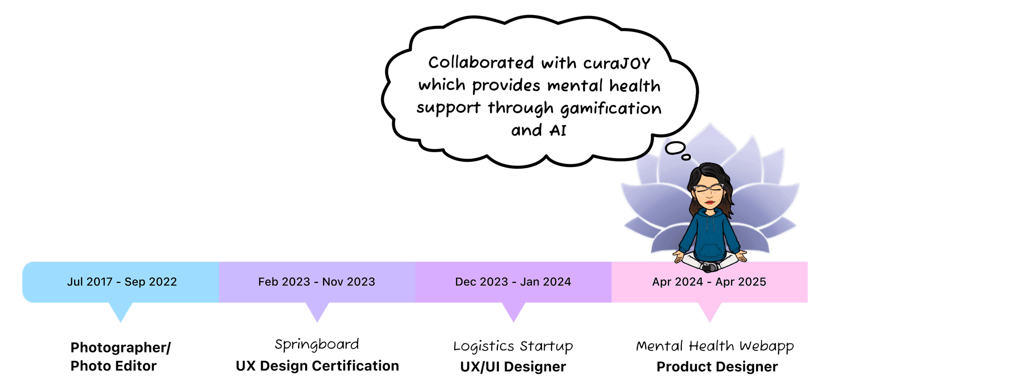 “She is always meticulous in her attention to detail and can easily think in multiple perspectives, making her a reliable and trustworthy colleague. In addition to her skills and potential as a designer, her sociable and cordial nature makes it easy for anyone to communicate comfortably with her. She consistently delivers high quality work without ever missing deadlines and is more than happy to help her teammates out when they were struggling.”