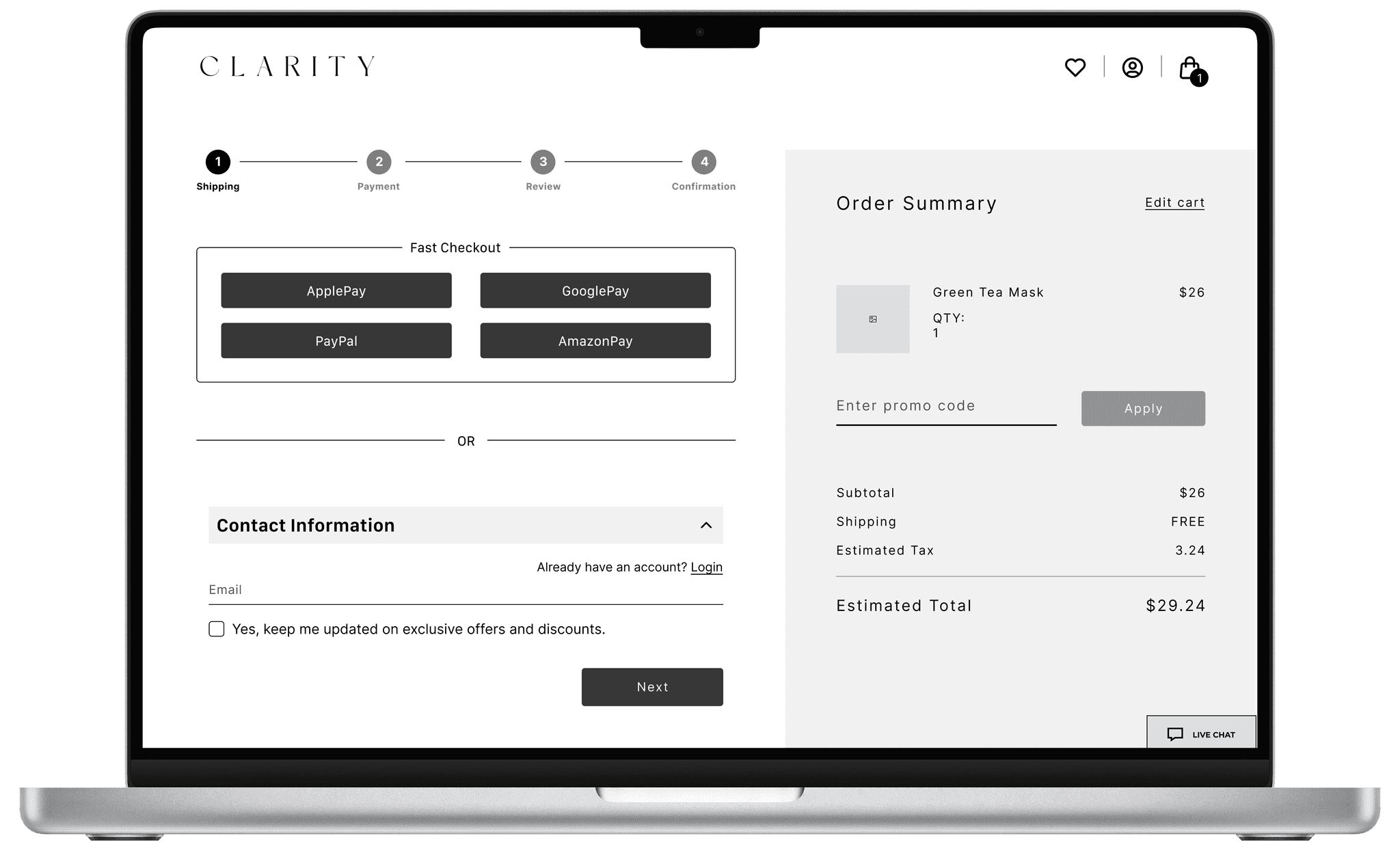 CLARITY is an e-commerce website for skin care, and it aims to enhance the conversion from browsing to checkout.