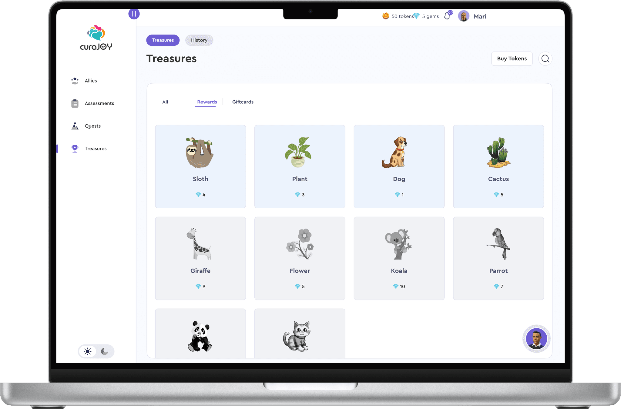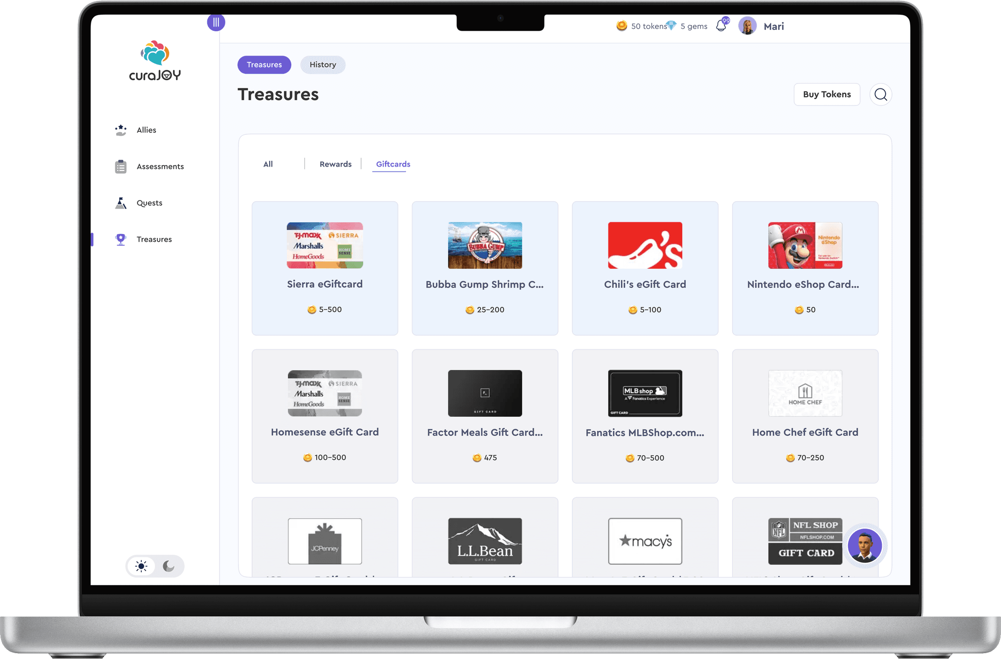 curaJOY is a nonprofit tech organization that provides mental health support via gamification and AI.