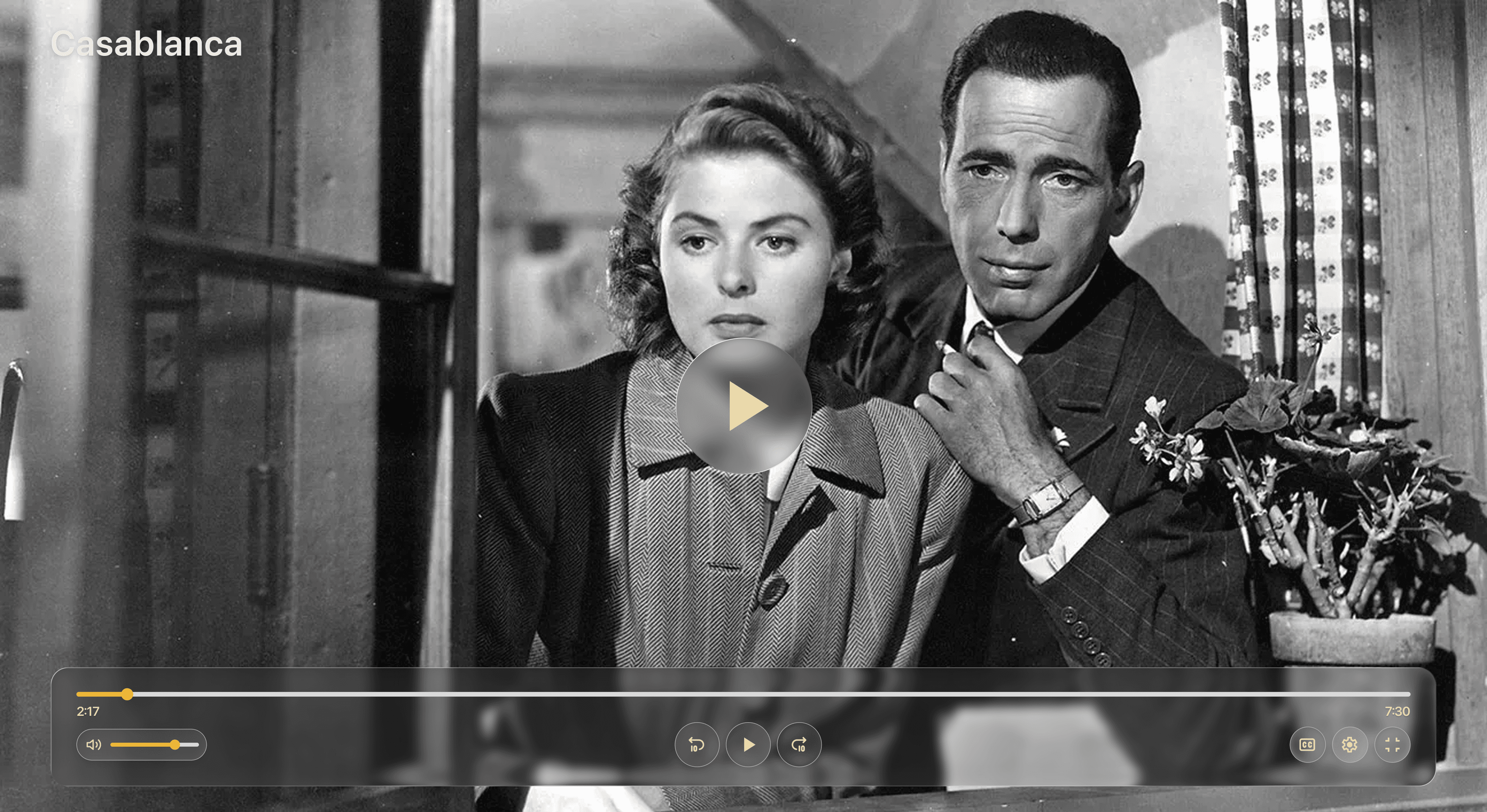 I decided to explore a glassmorphism-inspired UI for this video player. Since the glass effect can make underlying colors unpredictable, I paid special attention to accessibility and readability, adding a subtle shadow behind the text to ensure it remains clear and legible regardless of the background content.