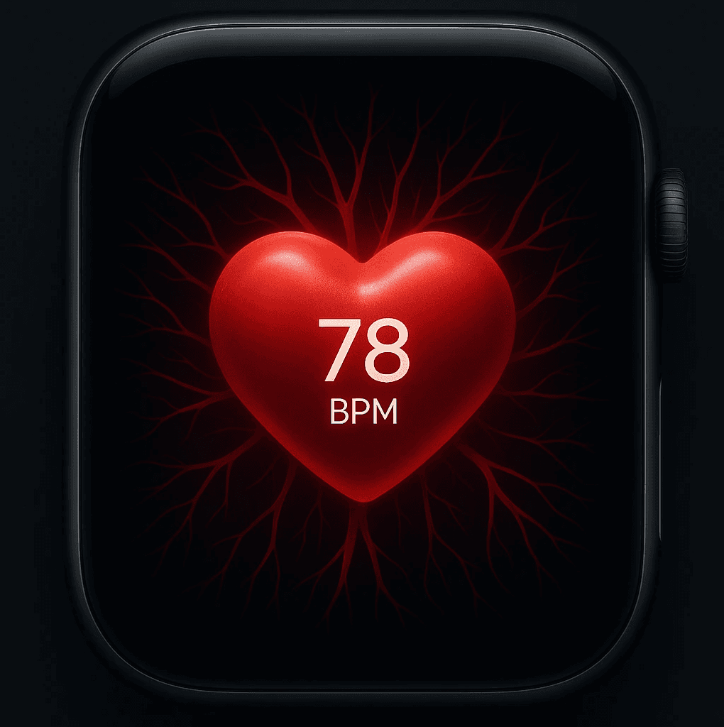 had never designed for a smartwatch screen before, so I saw this as a great opportunity to explore a new form factor. I envisioned a heart centered on the screen with veins radiating behind it, where each heartbeat would pulse, sending blood through the veins, capturing a dynamic living effect