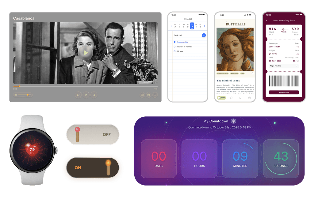 These Daily UI challenges helped me explore new design styles and interactions for different devices, from mobile toggles to smartwatch interfaces. I learned the value of thinking visually before prototyping and how to craft precise prompts while vibe coding to bring my ideas to life quickly.
